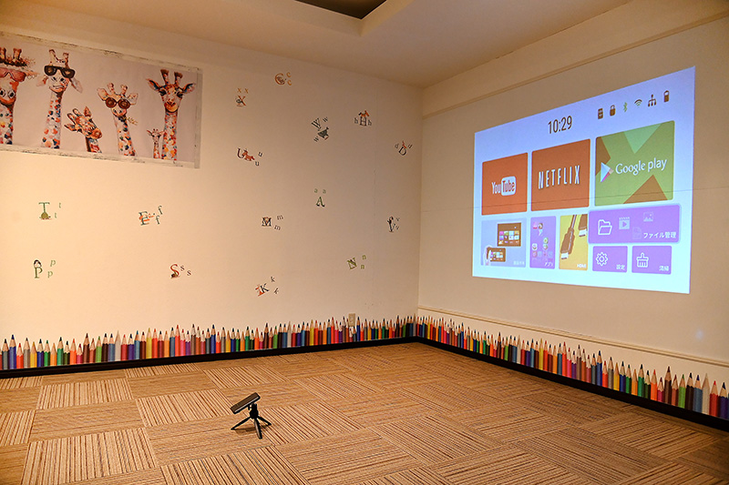 プロジェクターを使って体を動かすプログラムやその日頑張ったことを映しだしみんなに褒められることにより自己肯定感を育みます。