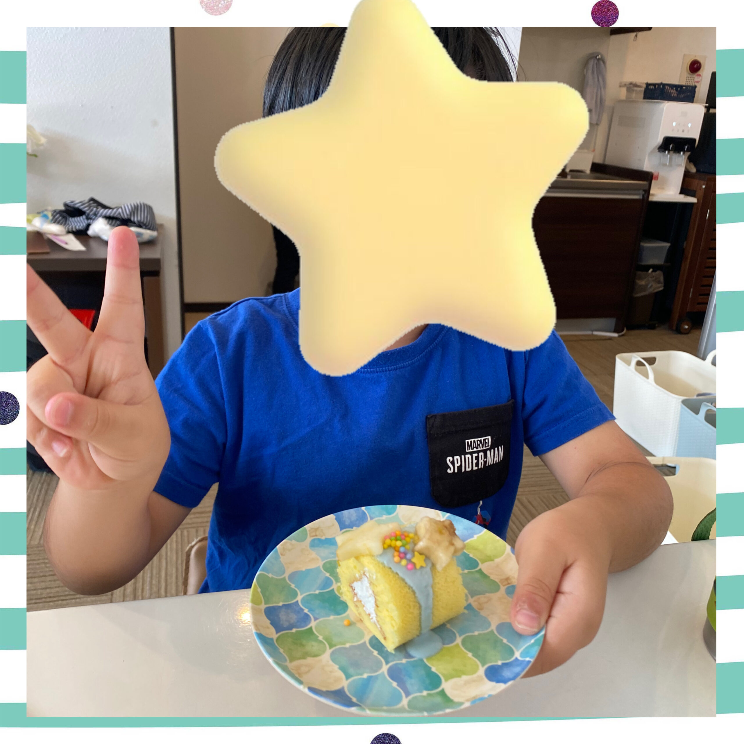 単1の子どもたちは天の川をイメージしてロールケーキに青いホイップをかけ、星型の果物やゼリーを飾りました(^^)